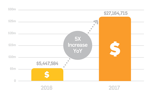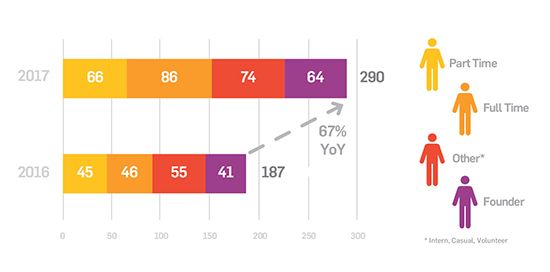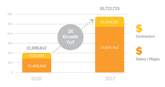 Our residents reported a five-fold year-on-year revenue increase in 2017, tripling their investment into wages and contractor payments in the same period. We also helped them to a bumper increase in investment capital and a lower reliance on debt.