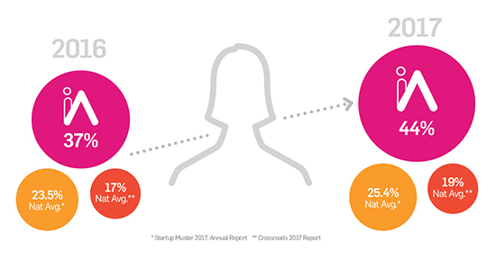 But at iAccelerate, we’ve created an environment and ecosystem that encourages female founders, co-founders and employees to thrive and bring their passion and vision to the table. More than 44 per cent of our founders and co-founders are female – in sharp contrast to national averages.