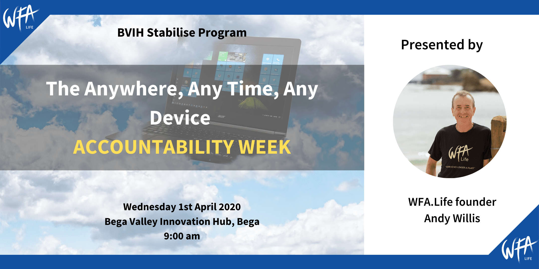 Working From Anywhere - Securing your business against disaster and business disruption - Check-in Accountability week It’s time to stop, review, recap and keep yourself accountable. Today we