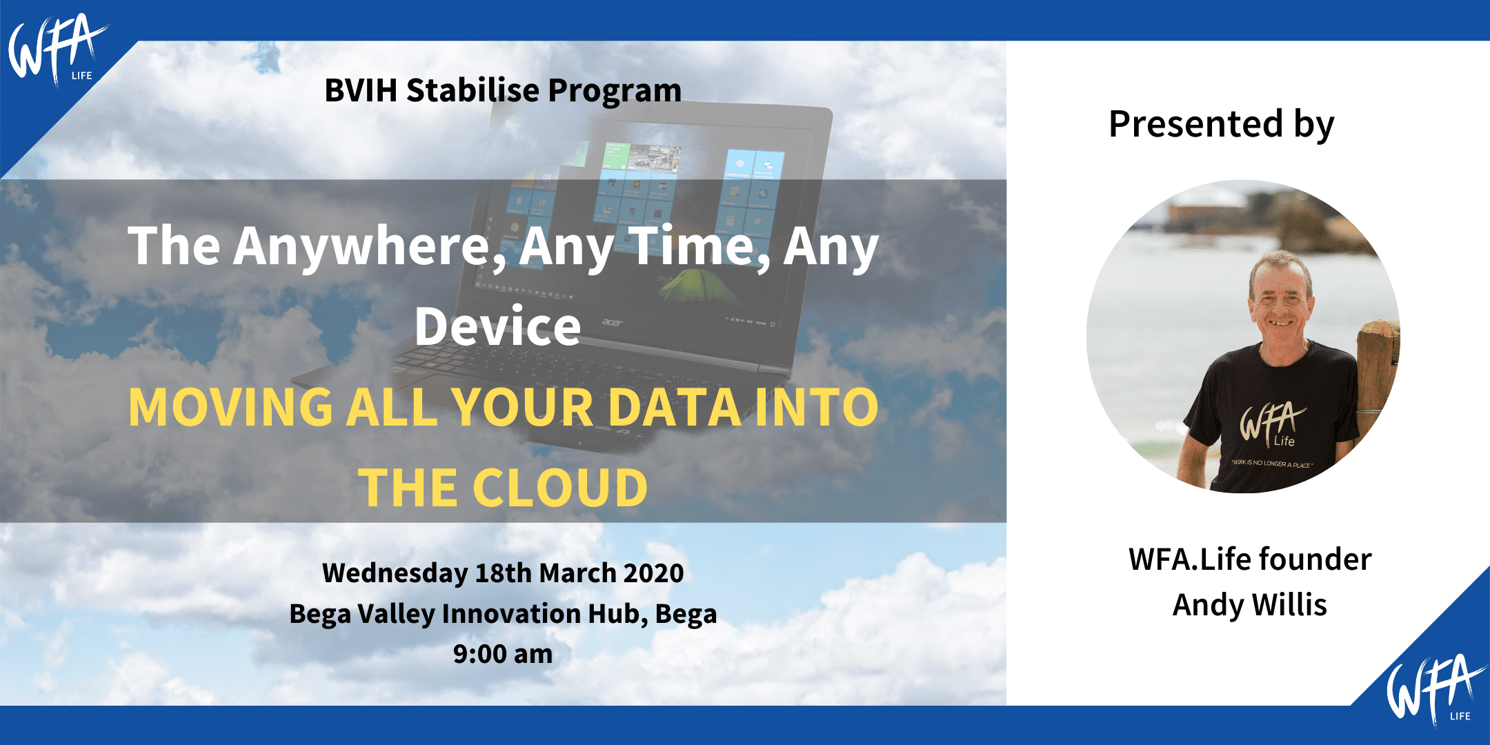 Working From Anywhere - Securing your business against disaster and business disruption - Moving your data into the Cloud.